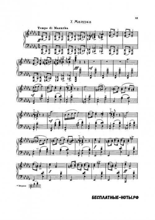 Классические ноты для фортепиано - Салонные пьесы, op.10 Мазурка - Рахманинов Сергей Васильевич