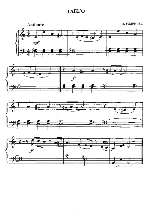Ноты для фортепиано - Танго - «Кумпарсита»