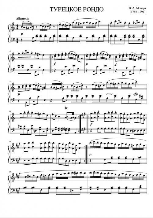 Турецкое рондо - ноты для фортепиано В.А. Моцарт