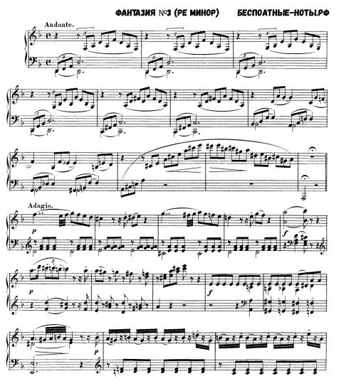 Ноты для фортепиано - Моцарт - Фантазия №3 - (ре минор)