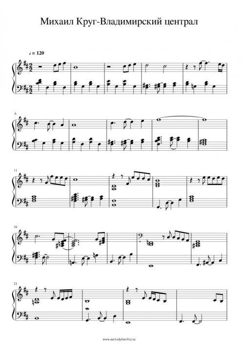 Ноты для фортепиано - Михаил Круг - Владимирский централ