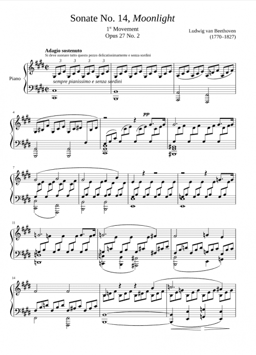 Соната №14 - “Лунная соната” - Людвиг ван Бетховен - ноты для фортепиано