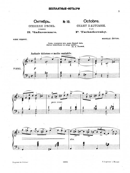 Ноты для фортепиано - Чайковский Пётр Ильич - Времена года – Октябрь. Осенняя песня