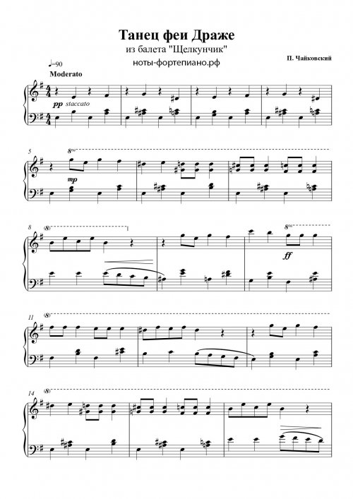 Ноты для фортепиано из балета "Щелкунчик" - П. Чайковский - Танец Феи Драже