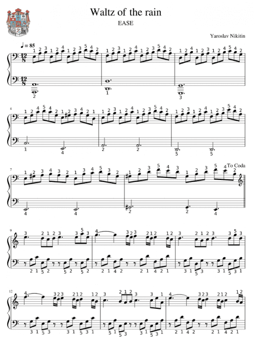 Ноты для фортепиано - Вальс дождя (Ярослав Никитин и Сергей Кузнецов)
