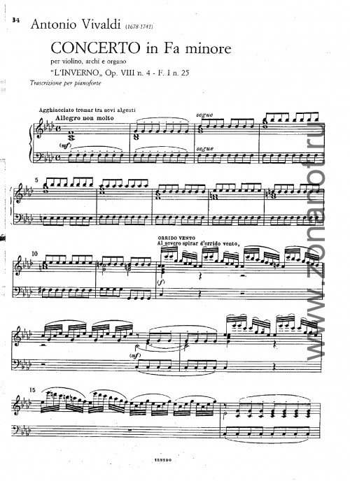 Ноты для фортепиано "Зима" (Времена года) - Вивальди