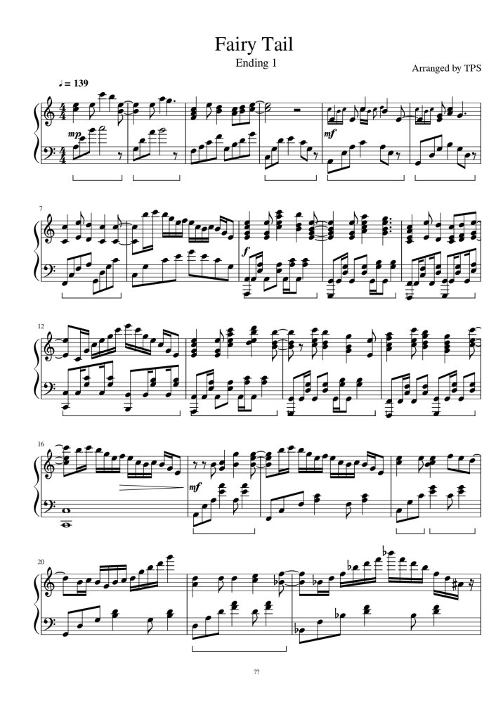 Аниме ноты для фортепиано "Fairy Tail - Glitter"