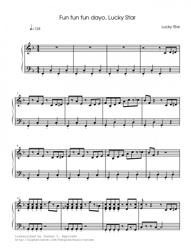 Аниме ноты для фортепиано "lucky star - fun fun fun"
