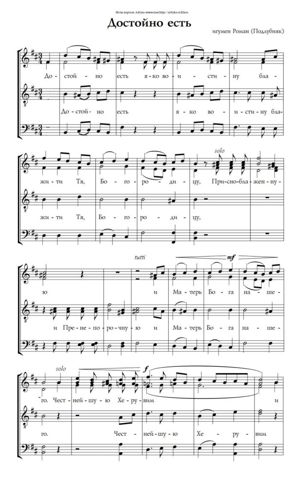 Церковная музыка - Достойно есть - ноты для хора и голоса